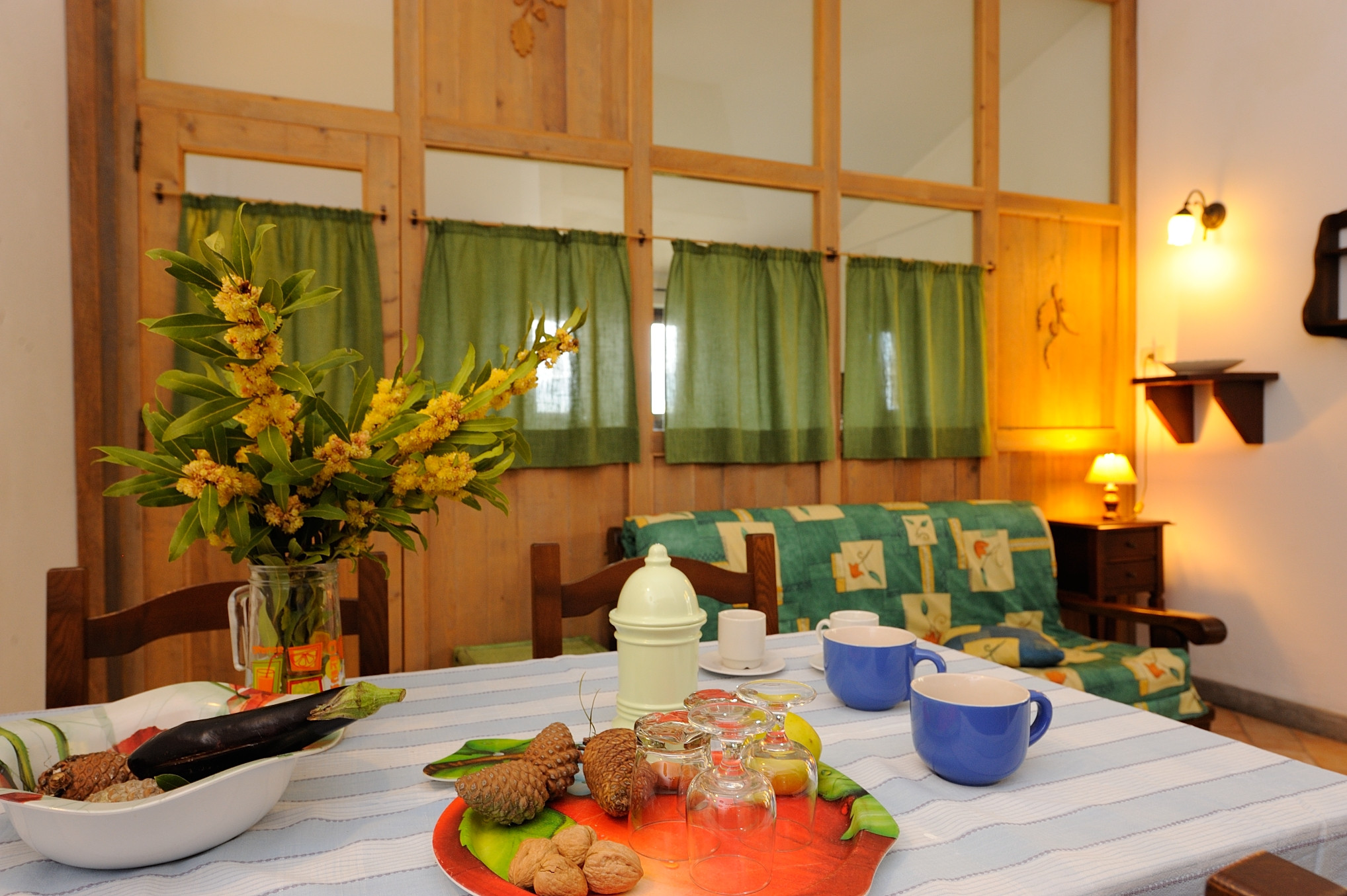 Ground floor. The accommodation consists of two rooms divided by a handcrafted wooden and glass wall. The entrance overlooks a living room-kitchen with double sofa bed, which leads to a double bedroom and large bathroom with shower. Autonomous heating. Large covered terrace and outdoor table, independent entrance.
